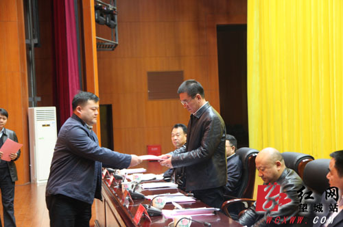 各街镇党(工)委书记向望城区委副书记、区长范焱斌递交综治工作和安全生产工作目标责任书。