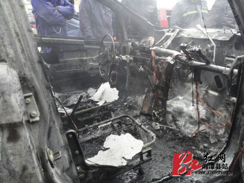 车子烧成只剩骨架。