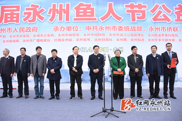 红网永州站3月31日讯(分站记者 甘红春 通讯员 文彦 黎然)共建生态文明,共享绿色未来。3月31日上午,“绿色湘江•保护母亲河”第三届永州“鱼人节”公益活动在湖南永州滨江公园举行启动仪式。市委副书记、市委政法委书记张严宣布活动启动。市政协主席、党组书记蒋善生,市委常委、统战部长石艳萍,市人民政府副市长贺辉等出席。