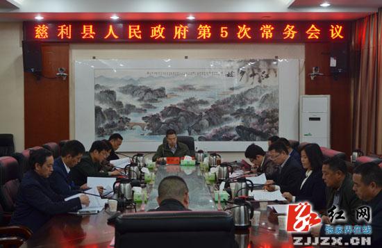 红网慈利县分站3月31日讯(分站记者 王馨翊)慈利县人民政府第5次常务会议召开,慈利县委副书记、县长高靖生主持会议,副县长李新龙、屈辉、谢模强、朱新、满金华、王大云出席会议,县人武部政委范谦、县人大常委会副主任朱经伟、县政协副主席周克平列席会议。