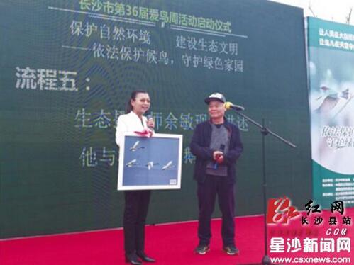 红网长沙县分站4月1日讯(星沙时报记者 蒋志斌 )伴随着快板打出的节奏,一群小学生现场朗读由新《野生动物保护法》改编的民谣;40余幅珍稀鸟类的摄影作品激发大家“爱鸟护鸟”的热情;数十名学生将自己亲手制作的鸟巢,小心翼翼地悬挂在松雅湖国家湿地公园内的树上……4月1日至7日为湖南省“爱鸟周”。昨日上午,长沙市第36届爱鸟周活动在松雅湖国家湿地公园举行,一个个颇具意义的活动吸引了500多名爱心志愿者和市民的加入。