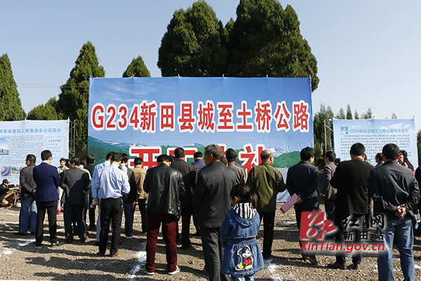 新田县人大常委会副主任毛群联宣布项目开工建设,副县长李勖川在开工典礼上对项目建设业主单位、项目建设指挥部、交通部门、施工单位、监理单位等提出具体工作要求,希望通过各方共同努力将该项目建成安全优质的示范工程、样板工程、富民工程。县政协副主席何三明主持开工典礼,相关乡镇、村代表分别就如何配合项目建设作表态发言。