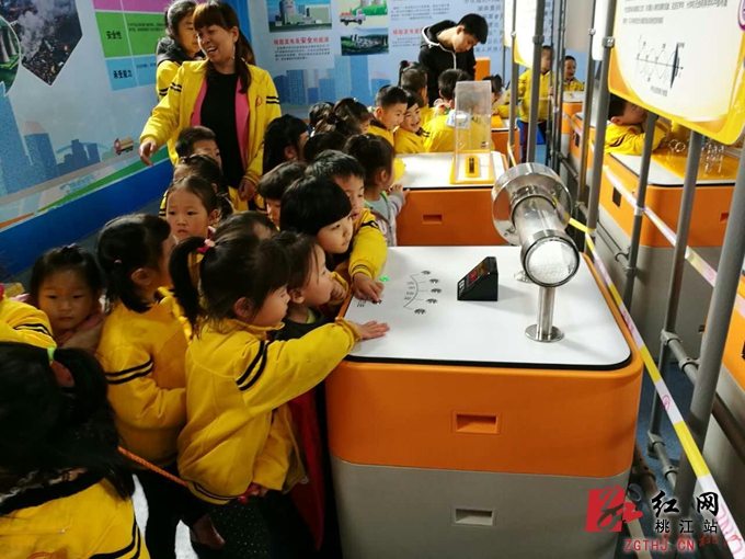 杨帆幼儿园、桃江县职业中专学校的学生们体验科普展品。
