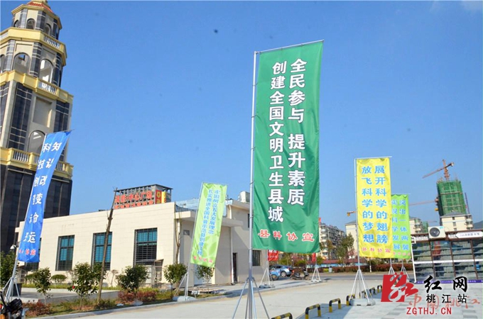 展馆周围宣传桃江县“创卫”工作的相关标语。刘琼 摄