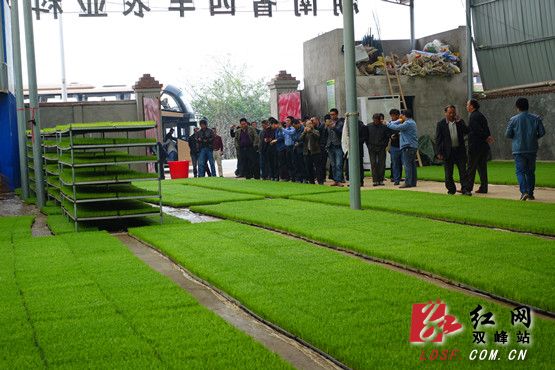 双峰县种粮大户学习观摩育秧新技术
