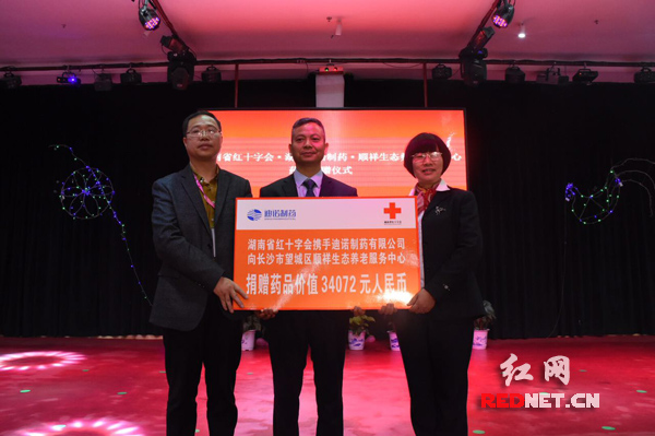 湖南省红十字会携手湖南迪诺制药向长沙顺祥生态养老服务中心捐赠药品。