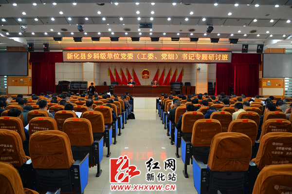红网新化县分站4月14日讯(分站记者 邹畅宁)4月13日上午,新化县乡科级单位党委(工委、党组)书记专题研讨班开班,学深悟透习近平总书记系列重要讲话精神,认真实施去年12月市委出台的《关于贯彻落实党的十八届六中全会精神,推进全面从严治党落地生根的若干意见》,加深对落实《准则》《条例》重要性、必要性和实践性的认识与理解,进一步增强管党治党的责任担当意识。