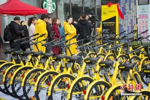 中新网4月17日电 4月15日,ofo小黄车在长沙前行美术馆举办中国首届共享单车公益展,意在倡导规范用车、文明出行,传递社会正能量。