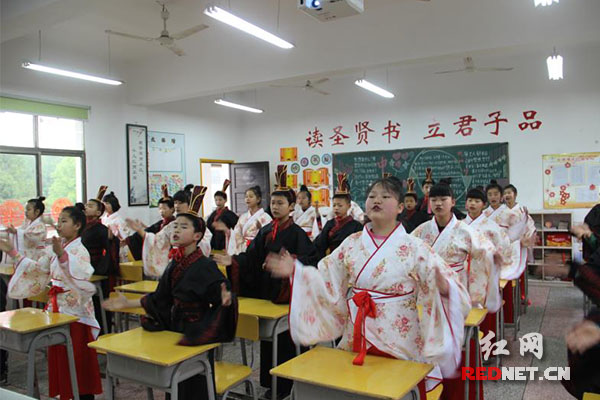 班主任夏青说,国学以孝开启人的本善之源,以孝入道,传承圣贤之教导、培养品德之本源,让仁、义、礼、智、信、孝、勇等修身美德深入孩子精神与生活,从小构建孩子们大爱、大仁、大义之美德,全面建立孩子正确的人生观、价值观、世界观。