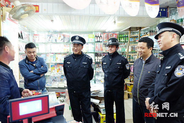岳阳市岳阳楼区副区长、公安分局局长余昕(左三)现场指挥盘查专项行动。