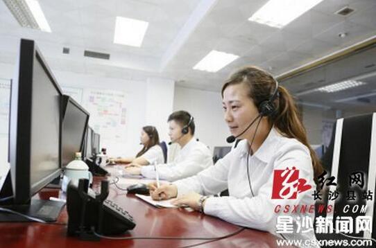 在长沙县数字化城市管理指挥中心的坐席大厅,当日值班长杜姣妹和同事正在接听市民来电,同时处理采集情况。蒋炼 摄