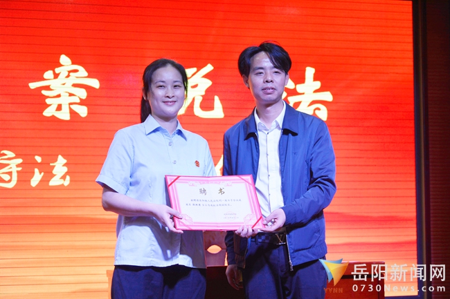 岳阳中院刑事审判第一庭副庭长、女子合议庭审判长汤洪清(左)被聘任为春雷学校法制副校长。