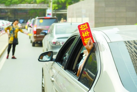 5月2日,长沙市芙蓉区南元宫巷,居民坐在车内高举“有车位”的牌子揽客。因为湘雅附二医院的车位紧张,附近小区的不少居民自制“有车位”的停车牌揽客,将车引导到小区停放,并违规收取20元的停车费,不出示任何收费凭证。其行为不仅影响小区公共安全,还造成消防通道堵塞,留下安全隐患。
