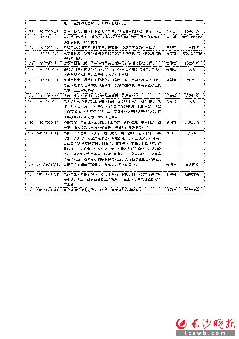 中央第六环保督察组向长沙市转办的群众信访举报件一览表 (第七批 2017年 4月30日12时- 5月1日12时)