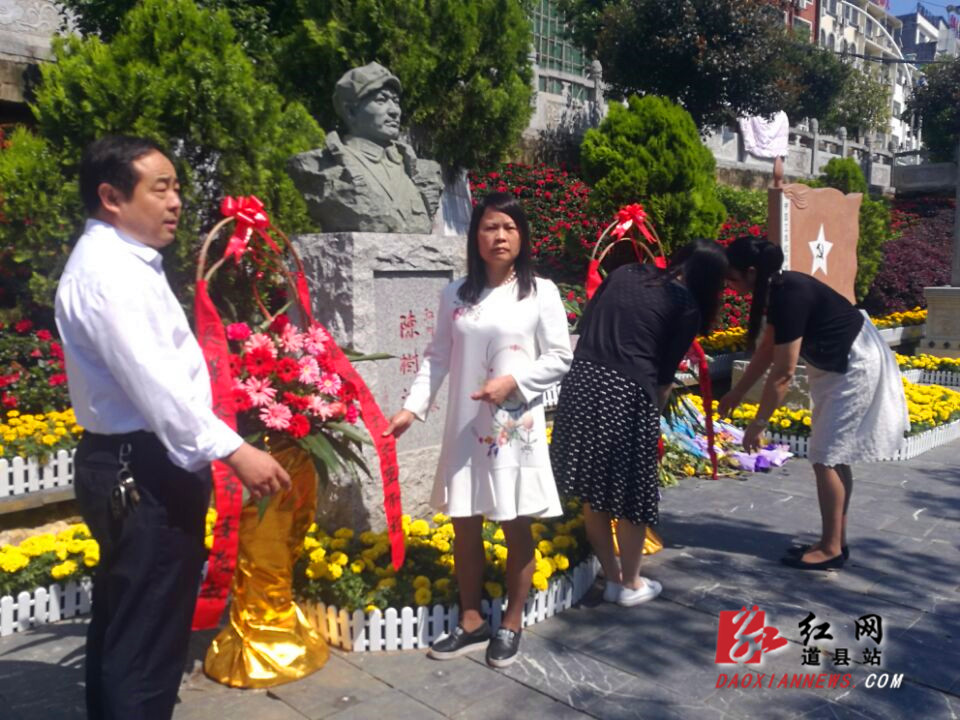 5月5日,民革永州市委专职副主委、秘书长、市人大常委唐翔(左一)为陈树湘墓敬献花篮。