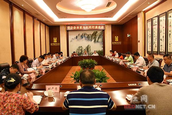 红网湘潭站5月12日讯(记者 焦炬 通讯员 陈文美)5月11日下午,湘潭市工商业联合会与湘潭市纪委共同邀请11位知名非公企业家参加“与纪同行”专题座谈,企业家们就企业经营过程中遇到的问题畅所欲言,并提出了意见和建议。湘潭市委常委、纪委书记胡卫兵,市人大常委会副主任、市工商联主席颜集成等出席座谈会。