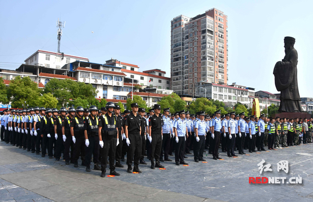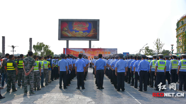 红网道县5月16日讯(通讯员 刘晓玲)5月16日上午,湖南省道县“万名义警·一呼百应”全民创安工程启动仪式在县敦颐广场举行。道县县委常委、政法委书记乌进甫,副县长、公安局长李良刚,县人民法院院长杨斌,县人民检察院检察长沈阳,县公安局政委秦波,县委政法委副书记程铁伶,县司法局局长郭国平,县政法委委员、综治办主任蒋红光,县维稳办主任黄胜成,以及县公安局在家的党委班子成员出席会议,各乡镇场、街道以及县直、省市驻道单位分管政法综治的领导及义警代表;党政事业单位、学校、医院及公安管理的特种行业保安人员;银行、公司企业、楼盘小区、市场商场保安代表;环卫工人、出租车司机代表及治安志愿者代表;县公安局队室所主要负责人等500余人参加启动仪式。启动仪式由县委政法委副书记程铁伶主持。李良刚作动员讲话。