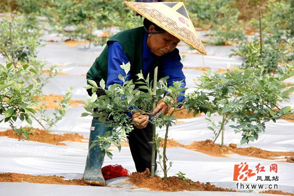 红网凤凰县分站5月17日讯(分站记者 龙珍 张霞)5月16日上午,记者来到湖南省凤凰县阿拉营镇安井村蓝莓示范园,只见村民们正在园区内为一株株挂满蓝莓果的蓝莓树苗进行细心检查、固苗,现场一派忙碌的景象。