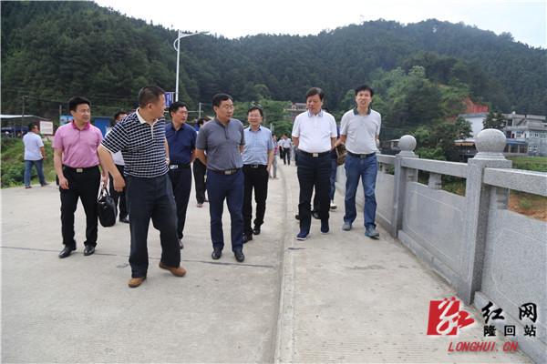 在六都寨水库大坝,王昌义实地了解水库除险加固、水库蓄水、抢险物资准备等情况。县委副书记、县长刘军作隆回县防汛工作汇报。