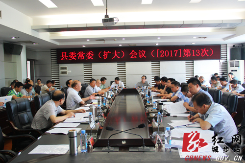 红网城步县分站6月14日讯(分站记者 周红)6月13日,湖南省城步县召开2017年第13次县委常委(扩大)会议。会议听取了贫困人口和低保对象精准识别后的信访维稳等情况、D级危房改造和易地扶贫搬迁问题整改情况、商务部定点扶贫和楠竹产业项目招商工作的汇报,研究了全县扶贫功臣评选方案和县委常委会议议定事项督查落实制度。