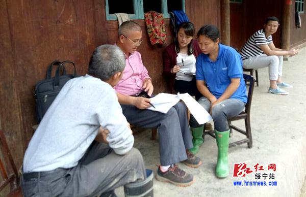 绥宁县国税局干部与结对帮扶贫困户商定脱贫措施。