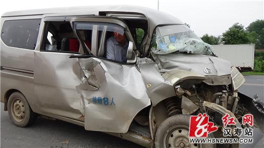 6月20日,汉寿县S205公路辰护液化气站旁一面包车发生车祸,一人被卡车内。