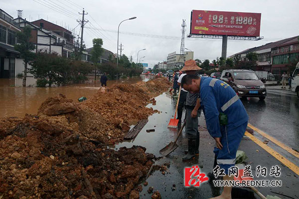 红网益阳站7月1日讯(记者 龚伟)湖南省益阳市益桃公路谢林港路段,因水位过高,溪水倒灌,一侧民房已进水,大水开始漫及路面。为避免影响正常通行,有关部门组织数十名劳力,正在搭建临时防水堤,阻击洪水淹没路面。目前该路段交通受阻,请广大司机朋友注意!