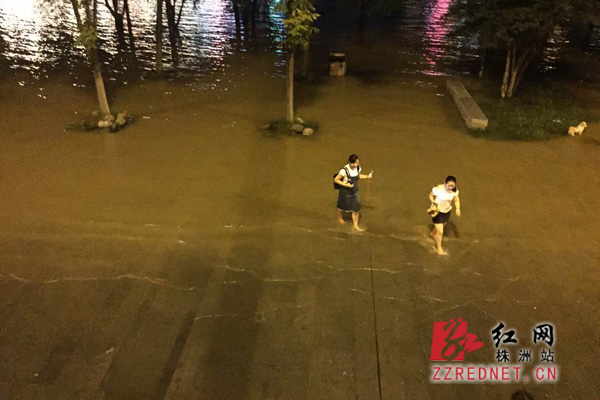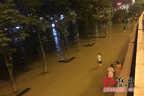 株洲沿江风光带各入口已被封条围起,禁止市民下去游玩。昨日晚上8时许,记者来到河西火车头广场,见到仍有不少市民不顾危险下水玩耍,不少市民拿着相机踏水拍照。