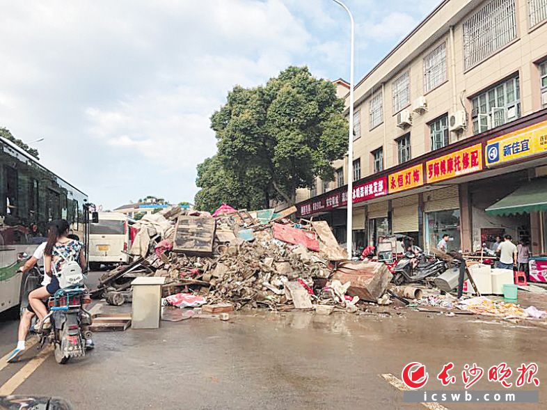 “我们过来协助将垃圾尽快清走。”市城管局副局长胡刚介绍,昨日下午,市城管局紧急调度200余人的城管队伍、164台城管应急设备及车辆赶到宁乡,分赴各个受灾点协助开展排涝、清淤、垃圾清运、街面清扫等工作。
