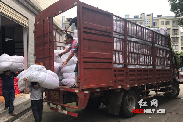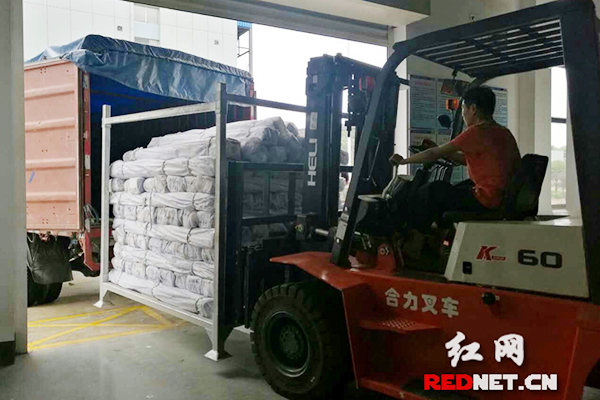 7月3日,长沙县民政部门下拨救灾棉被、毛毯等物资。