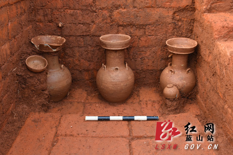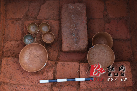 “这两座墓属于蓝山县五里坪古墓群,一座是东汉古墓,一座是比较罕见的唐代墓。”陈队长告诉笔者,“唐墓为单室砖墓,已经残缺。规格较小,平面呈'凸'字形,由墓道、墓室组成,墓道朝向西南。唐墓的发现,有重要研究价值。”