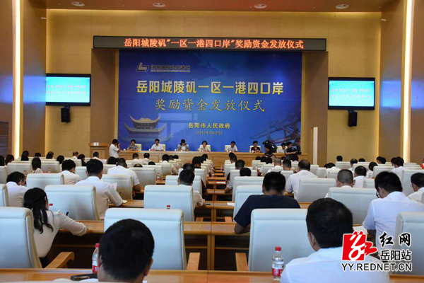 7月21日下午,湖南省岳阳市举行岳阳城陵矶“一区一港四口岸”奖励资金发放仪式。