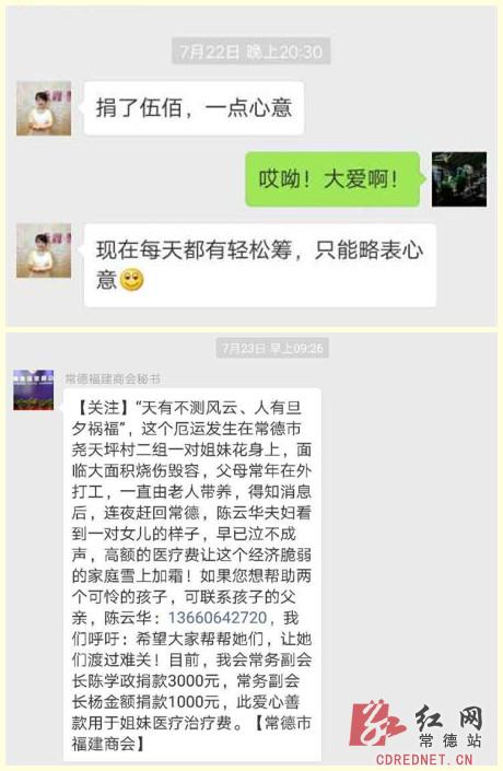 姐妹俩的父亲陈云华还通过网络平台进行募捐,很快便得了天南海北常德老乡的响应,不到5天,10万元爱心款便已筹齐。“这里的每一笔钱对我们来说都很重要,都是孩子的救命钱,非常感激这些伸出援手的好心人,是你们给了我们坚持下去的勇气和动力。”陈云华表示。一家有难众人帮,一笔笔爱心善款,为这个深陷困境的家庭托起了新的希望。