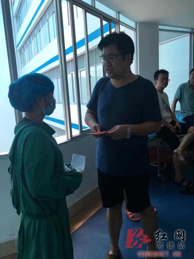 记者采访间隙,好心人来到医院送上善款。