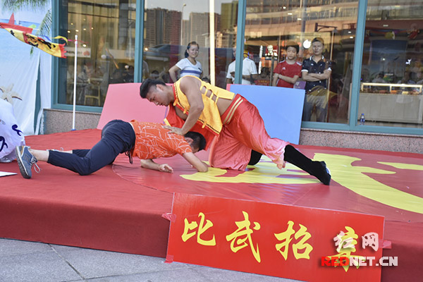 这幕所谓的“比武招亲”发生在万家丽路大润发门口,现场吸引了众多人围观,上台的年轻力壮者不少,只是都被“放倒”。晚上,有关此事的图片和讨论,在长沙飞快传开。