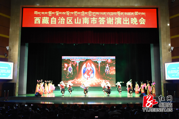 晚会以独具藏族特色的原生态舞蹈《祝福吉祥》热情开场,藏戏、卓舞、打阿嘎,带领观众走近神秘的雅砻与美丽的山南。与此同时,岳阳市也精选了一批独具湖湘特色文艺节目表演,整场晚会精彩纷呈,观众掌声经久不息。