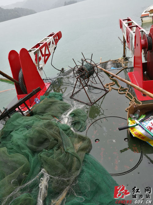 8月15日,城步畜牧局会同海事处、公安、儒林镇、白云湖湿地公园管理处的工作人员,联合清剿白云湖“迷魂阵”。