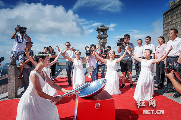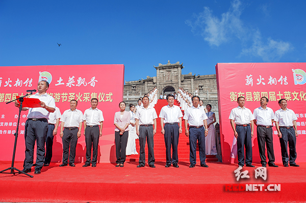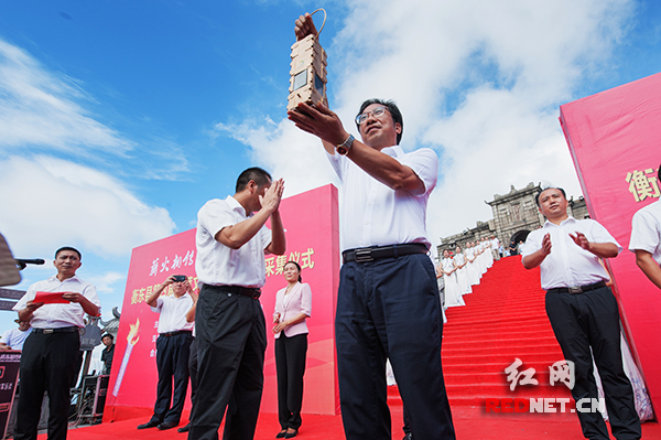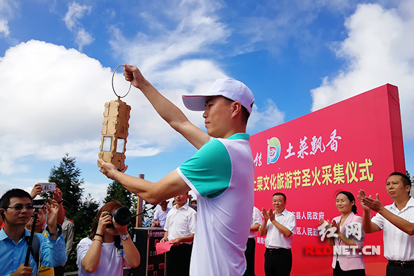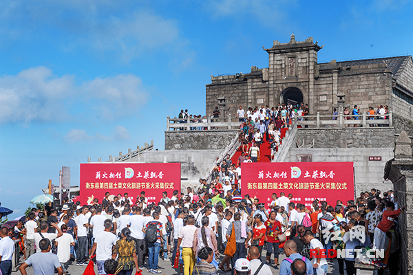 8月23日,衡东县第四届土菜文化旅游节圣火采集仪式在南岳祝融峰祝融殿前庄重举行。