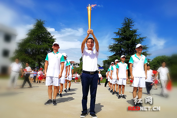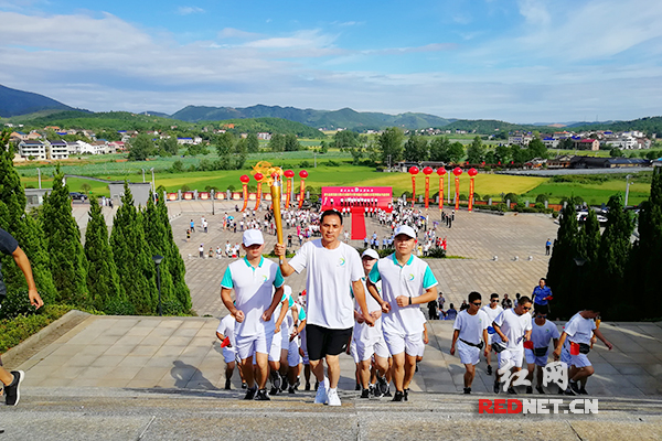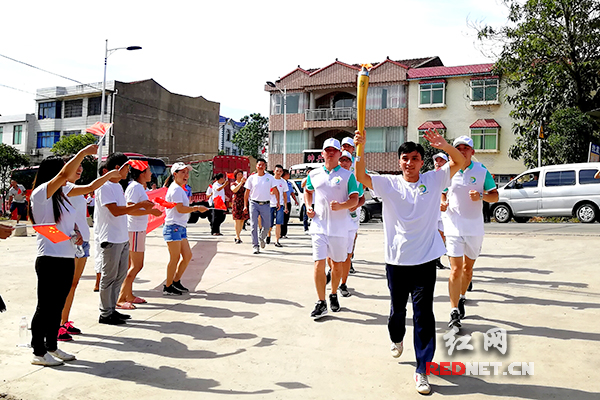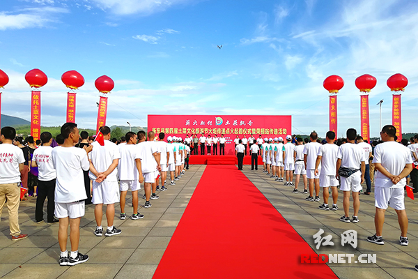 衡东县将取自南岳祝融峰的圣火带到罗帅的故里,举行火炬传递活动点火起跑仪式。