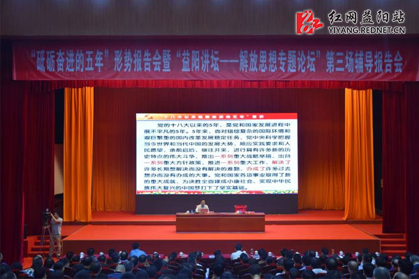 “砥砺奋进的五年”形势报告会暨“益阳讲坛——解放思想专题论坛”第三场辅导报告会会议现场。