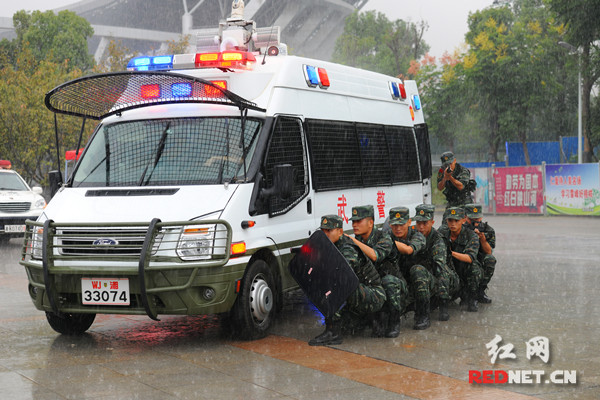 娄底警方将“恐怖分子”成功抓获。