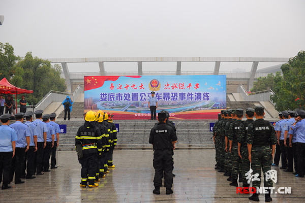 娄底市处置公交车“暴恐事件”演练成功举行。