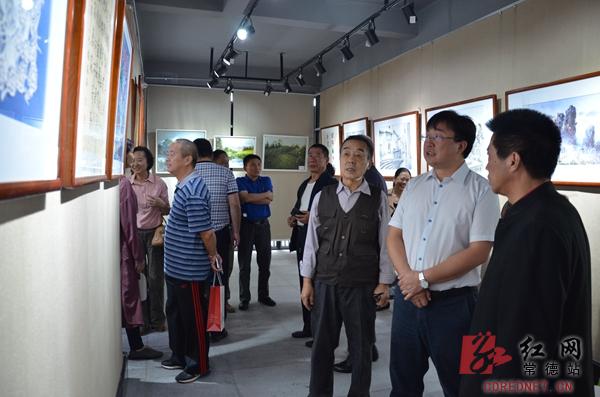 市人民政府副市长曾艳阳(右二)参观书画作品展。