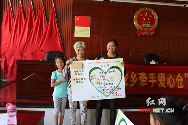 红网时刻10月3日讯(记者 胡弋)“感谢你们无私的帮助,我一定会带着你们的爱心,努力学习,长大后,我也要把爱心的火炬传递下去。”湖南省长沙市宁乡县沩山乡受灾农户家的小女孩张旺佳说道。10月1日,由湖南省文明办指导,长沙市文明办主办,沩山乡党委政府、萌习团、高桥国学馆共同承办的“城乡牵手爱心仓”国庆中秋慰问宁乡沩山受灾农户特别行动在沩山乡爱心驿站举行。