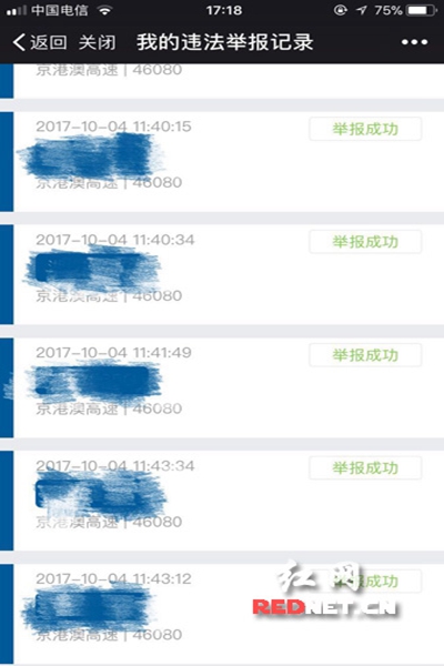 发帖的红网论坛网友木先生这个国庆长假可没闲着,“国庆八天,我去武汉玩了一趟,不用辛苦坐办公室照样有钱拿,比3倍工资还多”!原来国庆长假,木先生带着夫人自驾去武汉玩了一回。“10月1日我走的平汝高速,途中看到大巴翻车了,却有很多不守规则的人占用应急车道,警车和救护车难以通行。10月4日回程走的京港澳高速,只要占用应急车道的车我全部举报了,总共加起来快100辆车。按照举报成功一次奖励30元计算,如果全部举报成功,可以赚到3000块钱。”