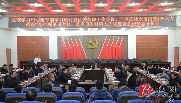 红网时刻12月9日讯(冷水滩分站记者 雷中祥 蒋凌志)12月7日,永州冷水滩区委学习中心组专题学习研讨暨区委务虚工作会议、全区迎接全市绩效和“六大战役”及17项单项考核、重点项目财税入库调度会议暨意识形态分析会圆满结束。区领导何冲龙、桂砺锋、施创太、徐志华、彭峰、陈建红、蔡富强、黄燕玲、艾祥柏、陈雄、许金善、齐纲要等参加会议。