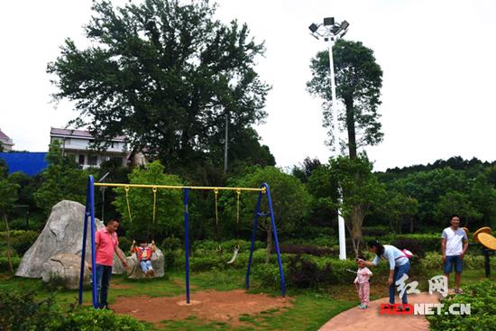 村民在娄星区杉山镇万乐村休闲文化广场游乐。