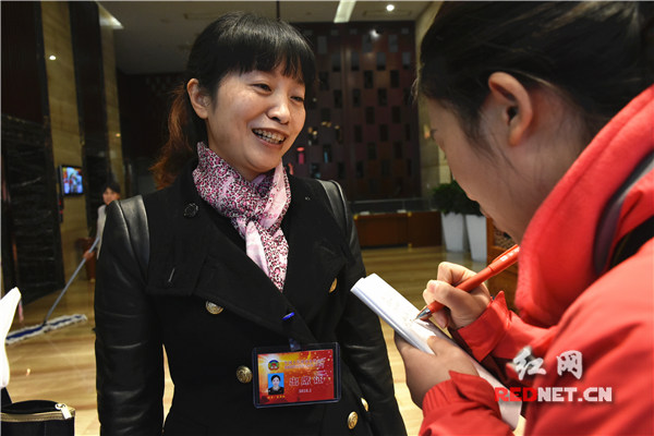娄底市工商联副主席熊燕妮接受记者采访。