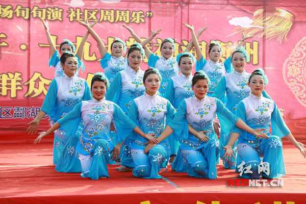 酃湖卫生院表演的舞蹈《爱我中华》。