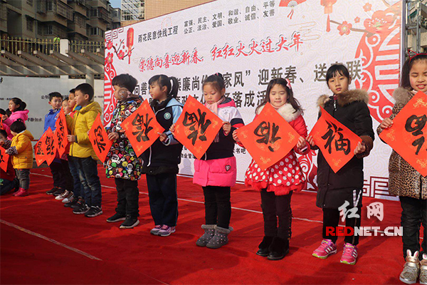 廉政广场送廉政春联,这是井湾子街道送给党员群众的特殊“年货”。